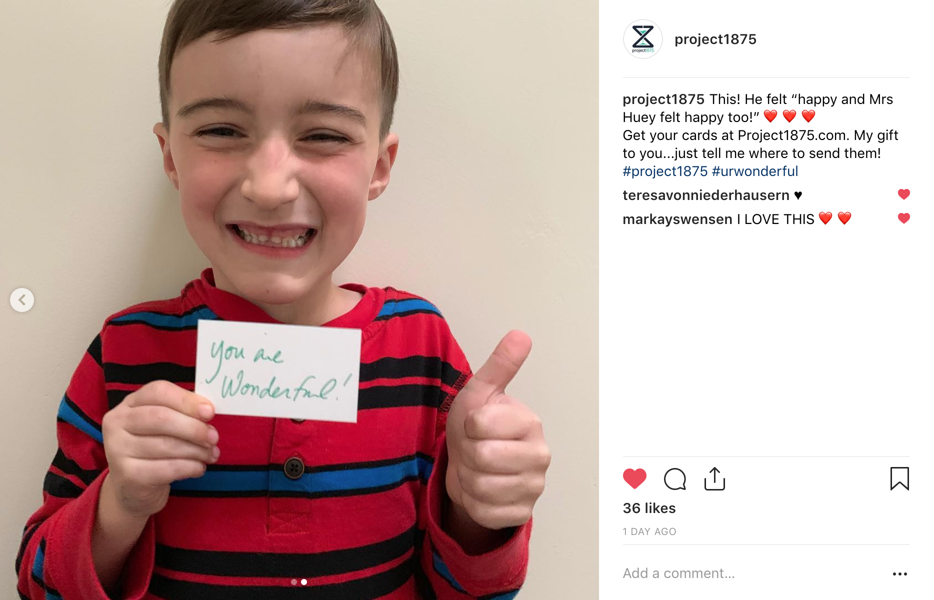 We created the "You Are Wonderful!" cards